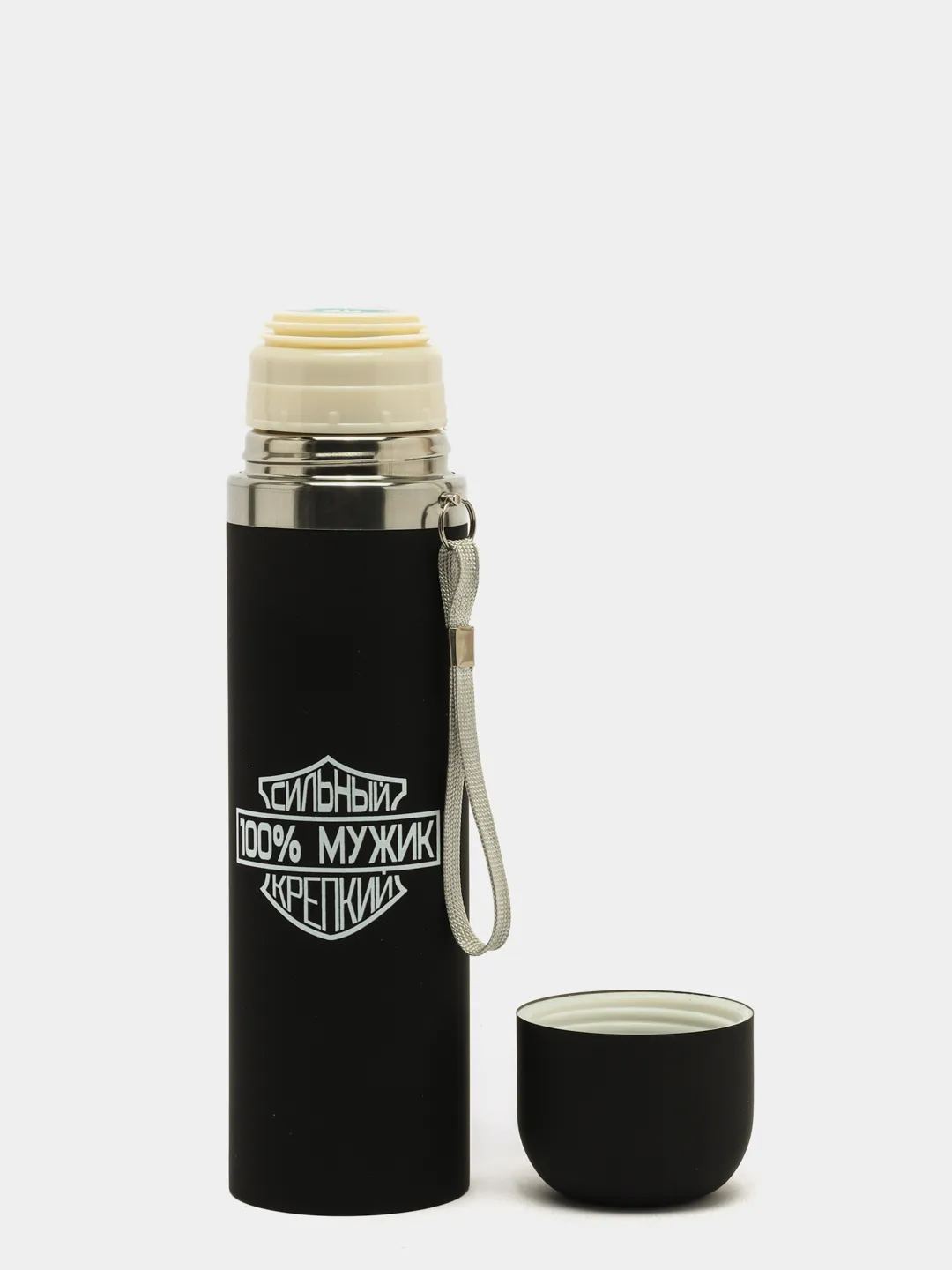Поставляется в подарочной картонной упаковке, имеет надпись белого цвета на корпусе "100% Мужик".